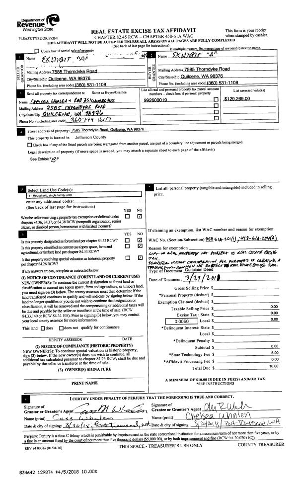 | Mailing Address: | 234 COLMAN DR PORT TOWNESEND, WA 98368-9477 | % Ownership: | 100.0000000000% |