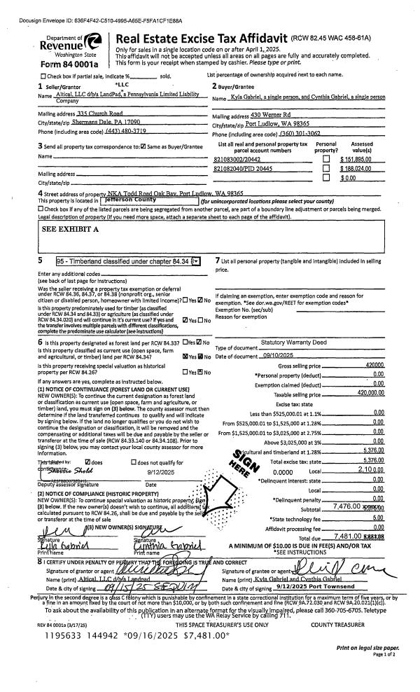 | 1 | 09/15/2025 | SWD | Statutory Warranty Deed | CHRISTIAN D & CIMA E ANDREWS | MARC B HENSLEY & | | | $175,000.00 | 144976 | |