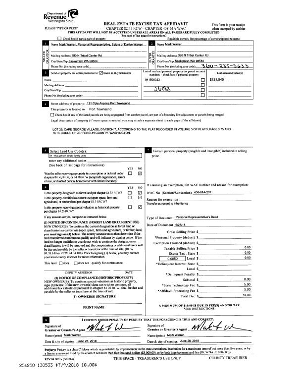 | 1 | 06/28/2018 | PRD | Personal Representatives Deed | | | | | | 130533 | |