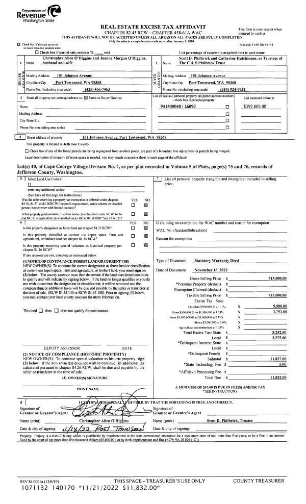 | 1 | 11/16/2022 | SWD | Statutory Warranty Deed | CHRISTOPHER A & JOANNE M O'HIGGINS | C & S PHILBRICK TRUST | | | $715,000.00 | 140170 | |