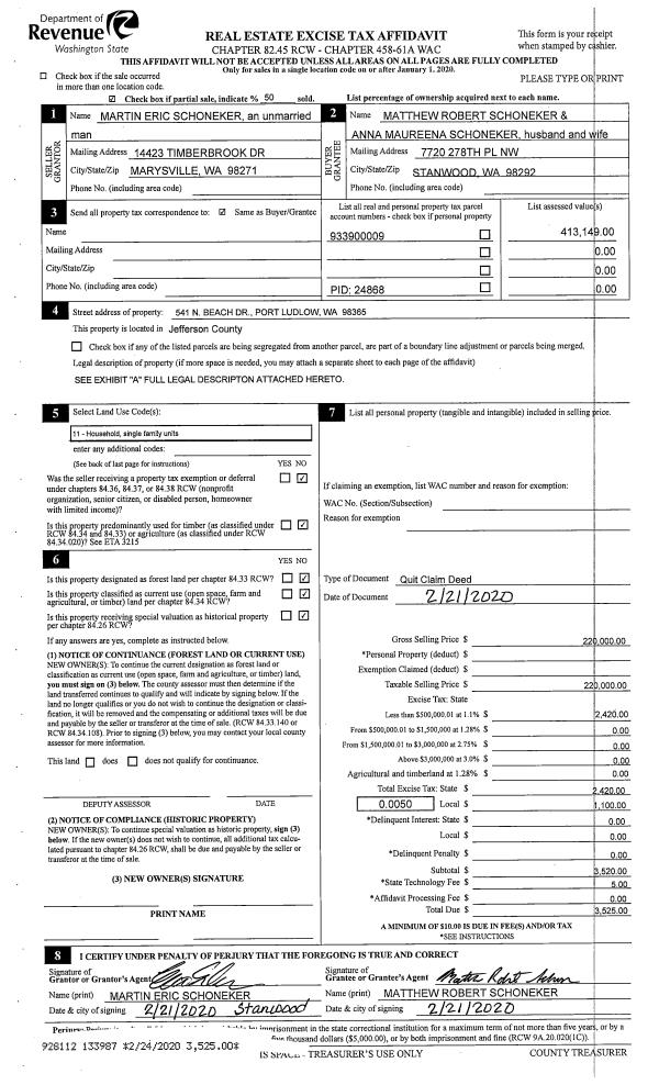 | Mailing Address: | PO BOX 21 BRINNON, WA 98320-0021 | % Ownership: | 100.0000000000% |