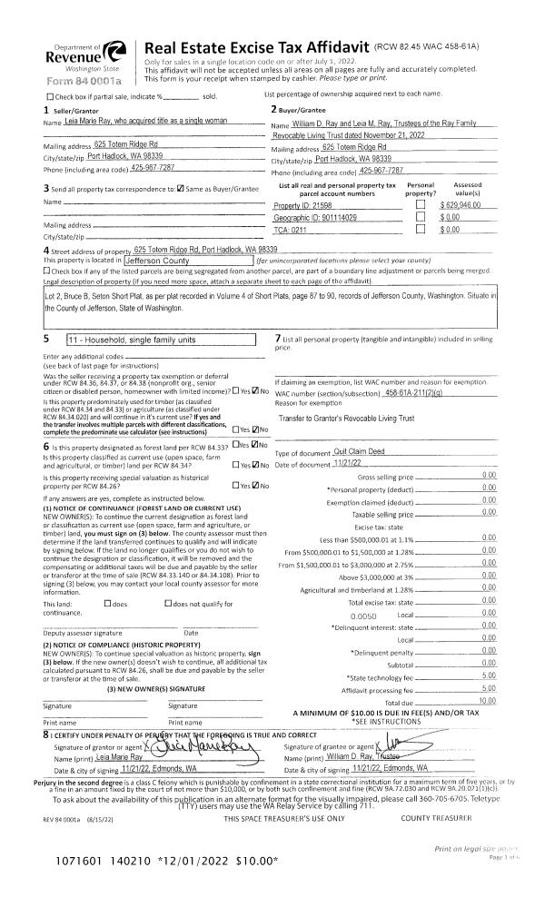 | Mailing Address: | 150 TAISON LN QUILCENE, WA 98376-8514 | % Ownership: | 100.0000000000% |
