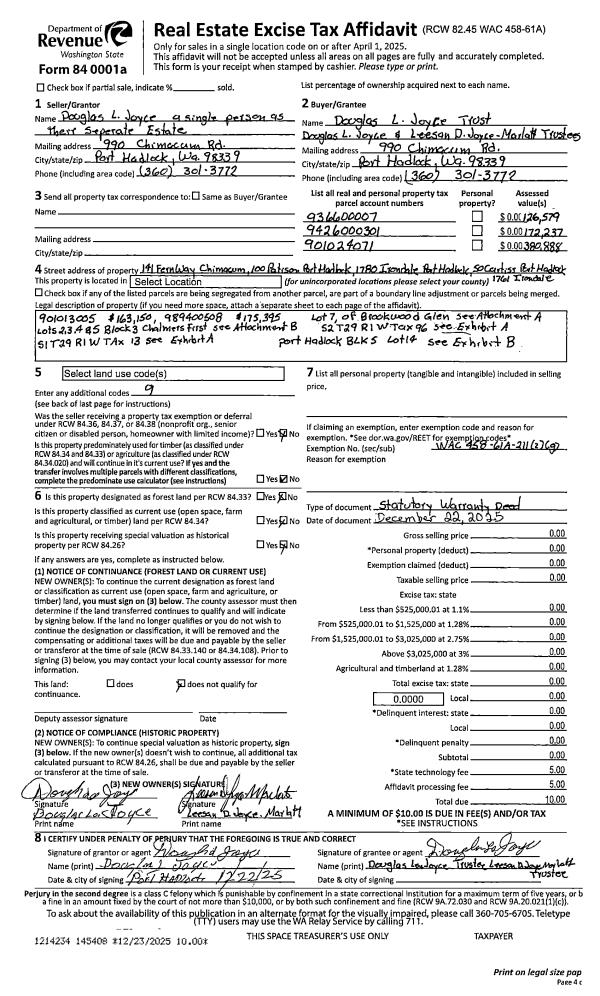 | 1 | 07/16/2025 | PRD | Personal Representatives Deed | AUDREY A CONNELL PERSONAL REPRESENTATIVE | JANICE HEDMAN/AUDREY A CONNELL | | | | 144646 | |