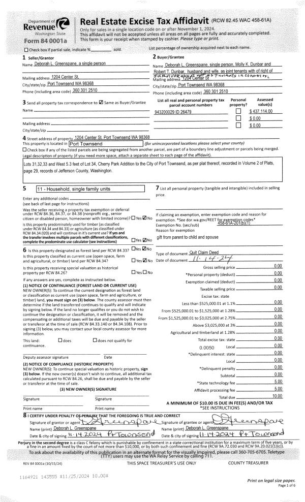 | 1 | 11/14/2024 | QCD | Quit Claim Deed | DEBORAH L GREENSPANE | DEBORAH L GREENSPANE | | | | 143555 | |