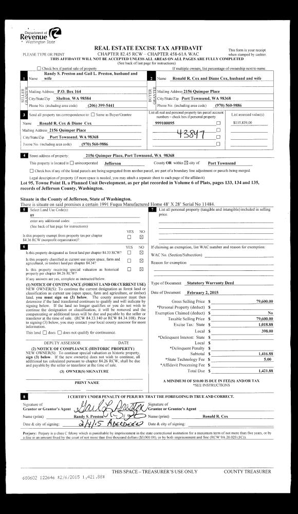 | Mailing Address: | 1072 CENTER ST PORT TOWNSEND, WA 98368-2939 | % Ownership: | 100.0000000000% |