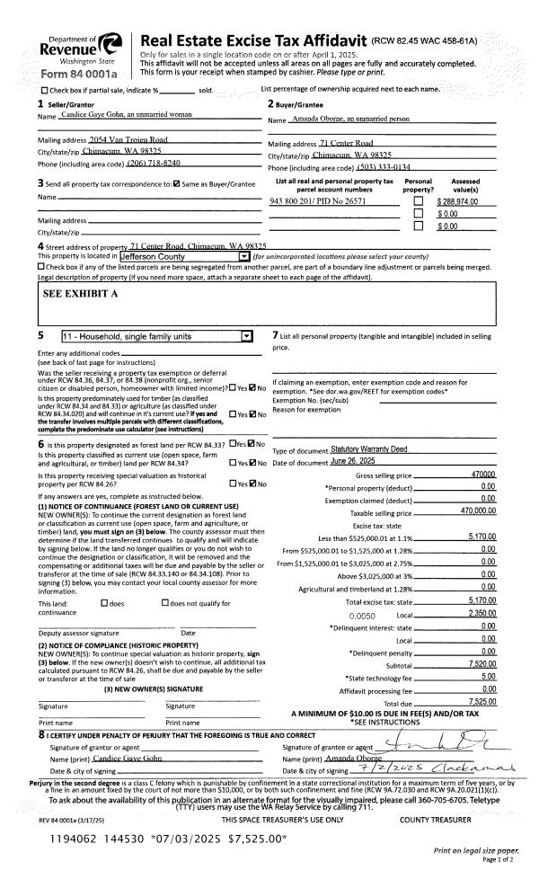 | 1 | 06/26/2025 | SWD | Statutory Warranty Deed | CANDICE G GOHN | AMANDA O OBORNE | | | $470,000.00 | 144530 | |