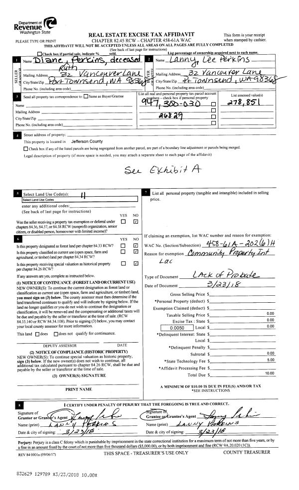| Mailing Address: | 32 VANCOUVER LN PORT TOWNSEND, WA 98368-9675 | % Ownership: | 100.0000000000% |