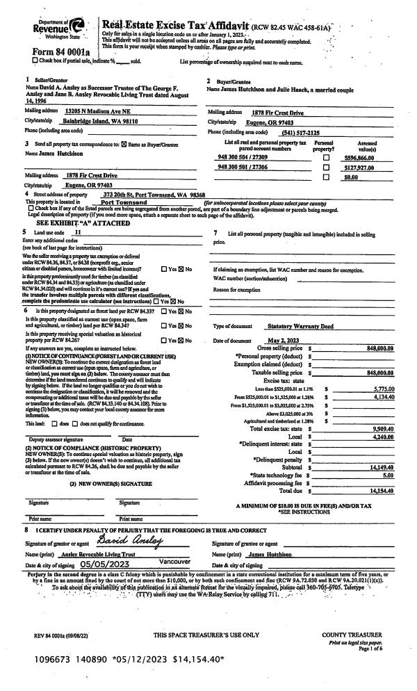 | 1 | 05/02/2023 | SWD | Statutory Warranty Deed | GEORGE F ANSLEY TRUSTEE | JAMES HUTCHISON | | | $848,000.00 | 140890 | |