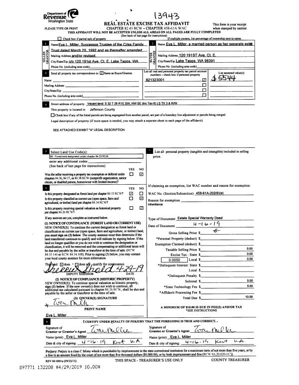 | Mailing Address: | 1084 JACKMAN ST PORT TOWNSEND, WA 98368-1836 | % Ownership: | 100.0000000000% |