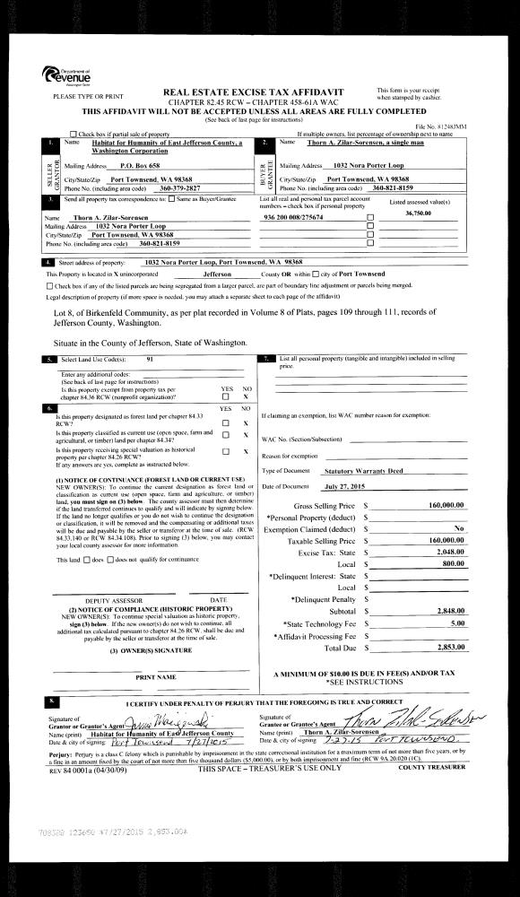 | 3 | 07/27/2015 | SWD | Statutory Warranty Deed | HABITAT FOR HUMANITY OF EAST | THORN A ZILAR SORENSEN | | | $160,000.00 | 123650 | |