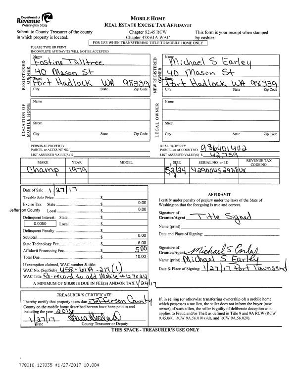 | 4 | 02/24/2015 | SWD | Statutory Warranty Deed | MERRILL & RING FOREST PRODUCTS | | | | | 122721 | |