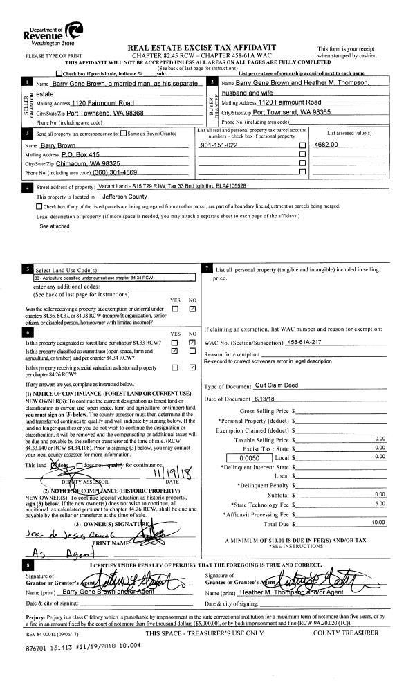 | Mailing Address: | 1008 WILSON ST PORT TOWNSEND, WA 98368-2910 | % Ownership: | 100.0000000000% |