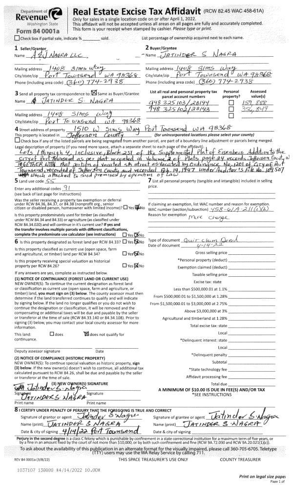 | 1 | 06/13/2022 | SWD | Statutory Warranty Deed | WADE HILDA INVESTMENTS LLC | KIRKLAN C TABER & JOHN C FUGLE | | | $235,000.00 | 139269 | |