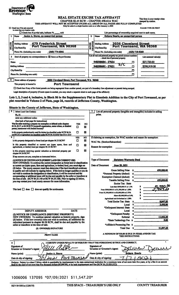 | 1 | 06/29/2021 | SWD | Statutory Warranty Deed | VAUGHN N STORM | DEBORA DEARIE | | | $699,000.00 | 137095 | |