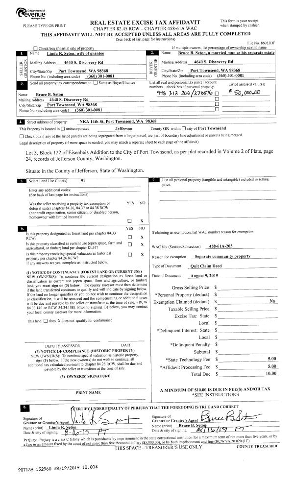 | 4 | 08/09/2019 | QCD | Quit Claim Deed | | | | | | 132960 | |