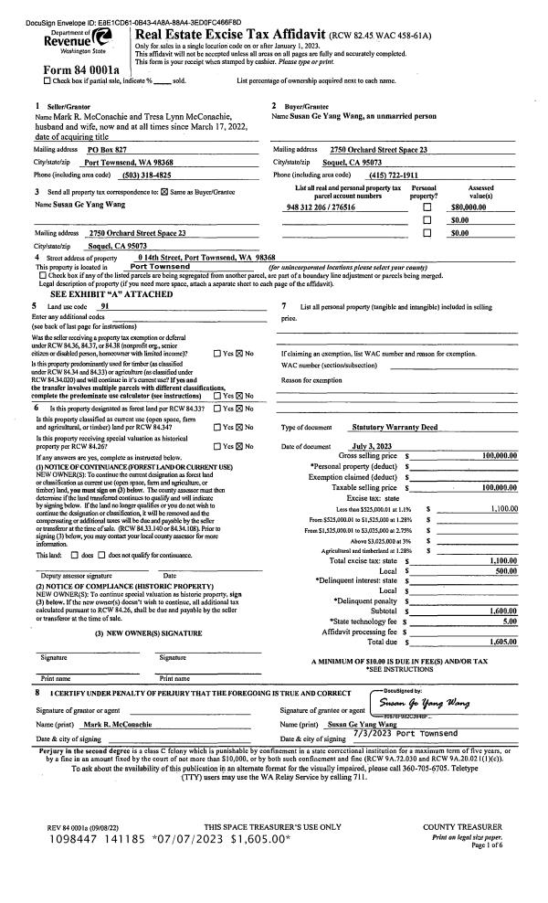 | 2 | 07/02/2023 | SWD | Statutory Warranty Deed | MARK R MCCONACHIE | SUSAN G YANG WANG | | | $100,000.00 | 141185 | |