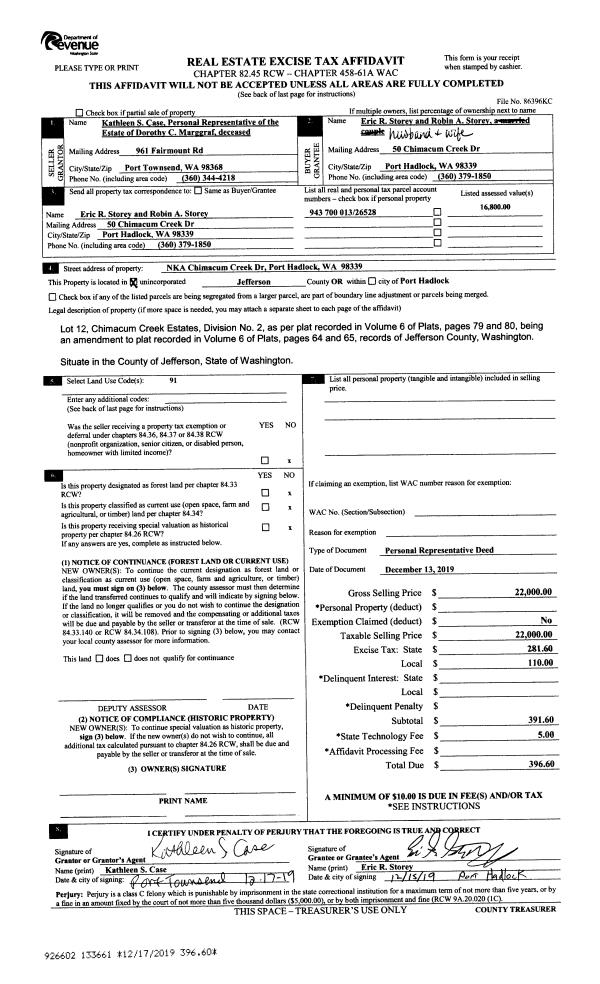 | 3 | 08/28/2006 | SWD | Statutory Warranty Deed | BRANDEBERRY, FLORENCE | CLAUSON, NANCY/LEWIS, CAROL/ | 0 | 0 | | 0 | 0 |