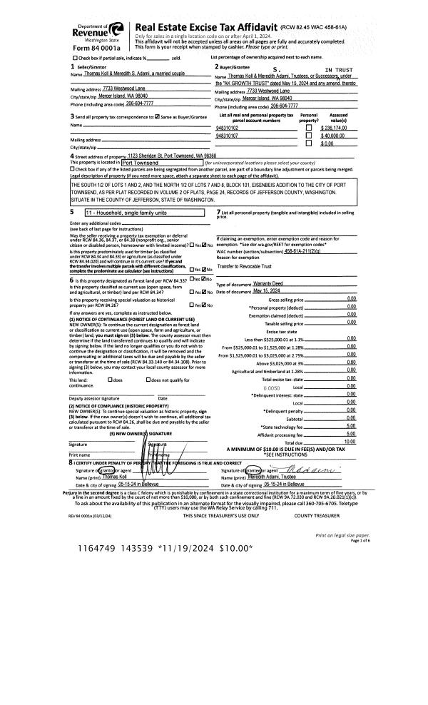 | 1 | 05/15/2024 | WD | Warranty Deed | THOMAS KOLL & MEREDITH ADAMI | AK GROWTH TRUST | | | | 143539 | |