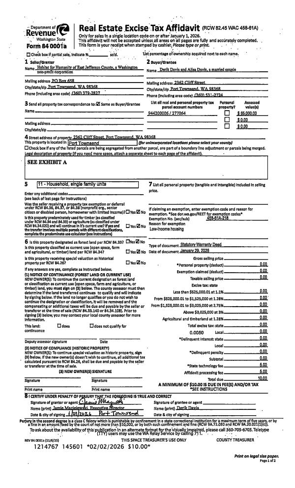 | Mailing Address: | JEFFERSON COUNTY PO BOX 658 PORT TOWNSEND, WA 98368-0658 | % Ownership: | 100.0000000000% |
