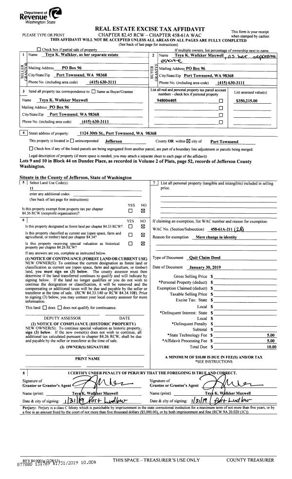 | Mailing Address: | 1478 12TH ST PORT TOWNSEND, WA 98368 | % Ownership: | 100.0000000000% |