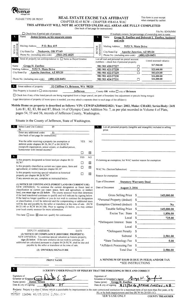 | Mailing Address: | 1403 23RD ST PORT TOWNSEND, WA 98368 | % Ownership: | 100.0000000000% |