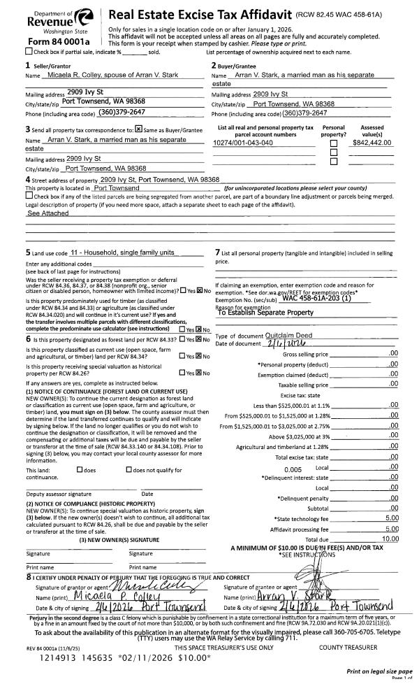| Mailing Address: | JEFFERSON COUNTY PO BOX 658 PORT TOWNSEND, WA 98368-0658 | % Ownership: | 100.0000000000% |