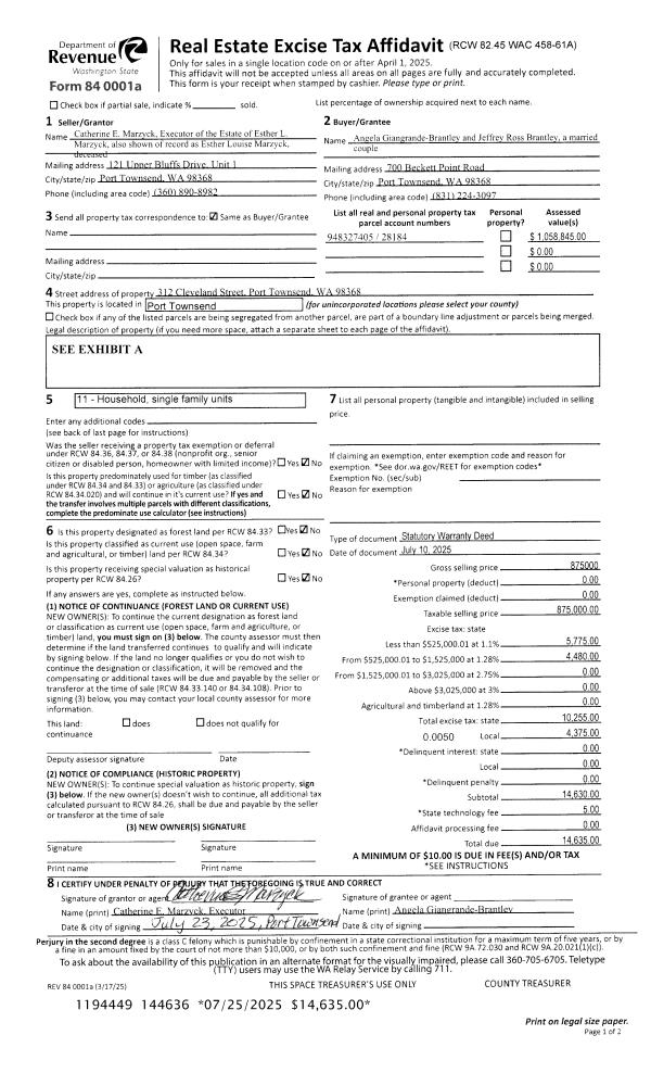 | 1 | 07/10/2025 | SWD | Statutory Warranty Deed | GERALD A MARZYCK | ANGELA GIANGRANDE-BRANTLEY | | | $875,000.00 | 144636 | |
