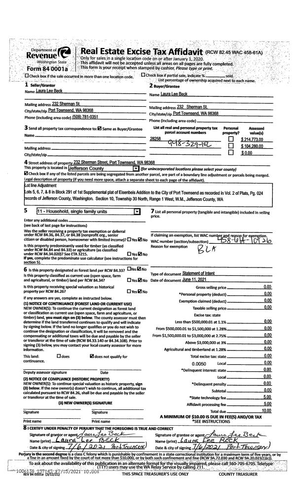 | Mailing Address: | 226 SHERMAN ST PORT TOWNSEND, WA 98368 | % Ownership: | 100.0000000000% |