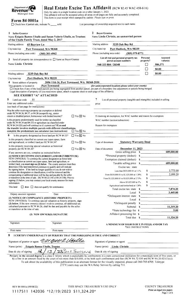 | 1 | 12/11/2023 | SWD | Statutory Warranty Deed | UBALLE FAMILY TRUST | LINDA CHRISTIE | | | $689,000.00 | 142036 | |