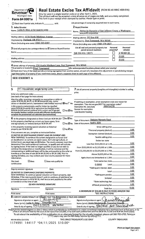 | 3 | 04/09/2025 | SWD | Statutory Warranty Deed | LESLIE B SKLAR | HABITAT FOR HUMANITY OF EAST | | | | 144117 | |
