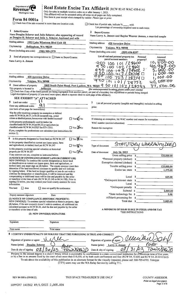 | 1 | 07/24/2023 | SWD | Statutory Warranty Deed | DOUGLAS SCHERER | LARRY A & RAYLEE W JENSEN | | | $125,000.00 | 141502 | |