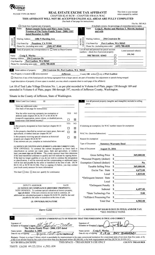 | Mailing Address: | 81 FARRINGTON RD PORT ANGELES, WA 98363-8603 | % Ownership: | 100.0000000000% |