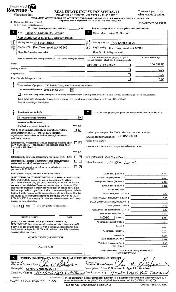 | Mailing Address: | 120 FAIRWAY LN B PORT LUDLOW, WA 98365-9724 | % Ownership: | 100.0000000000% |