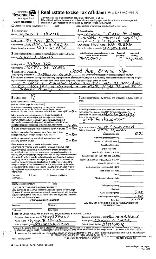 | 1 | 08/15/2025 | SWD | Statutory Warranty Deed | HARRISON HODGSON | ERIN WEST | | | $15,000.00 | 144797 | |