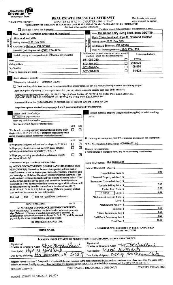| 3 | 09/24/2003 | SWD | Statutory Warranty Deed | ORR, URIAH N/JANICE M | HITT, JOHN & LINDA/TRUST | 0 | 0 | $280,000.00 | 98415 | 0 |