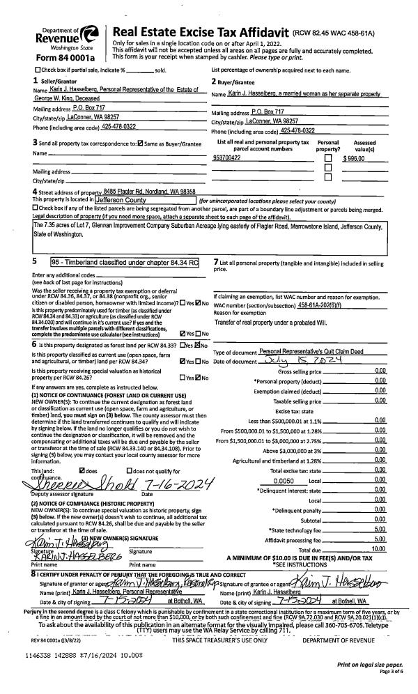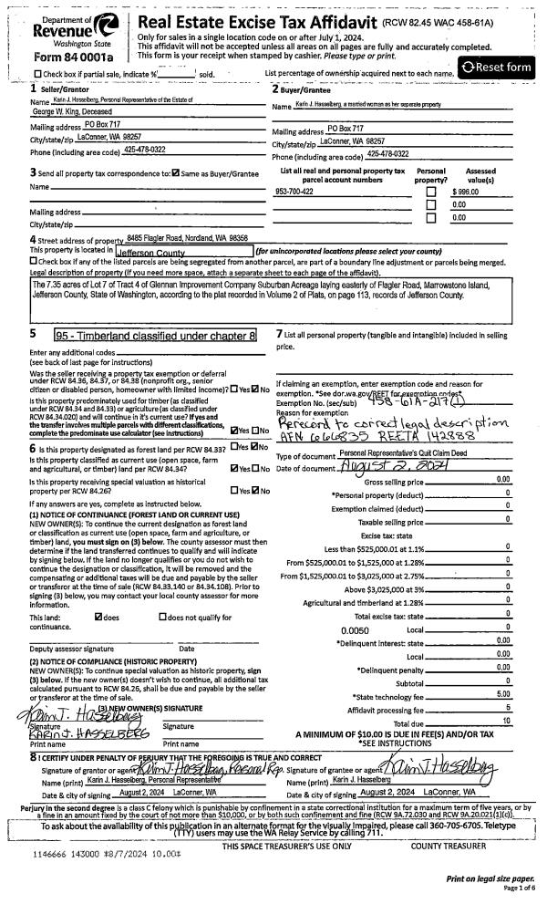 | 3 | 07/15/2024 | PRD | Personal Representatives Deed | KARIN HASSELBERG PERSONAL REPRESENTATIVE | KARIN J HASSELBERG | | | | 142888 | |
