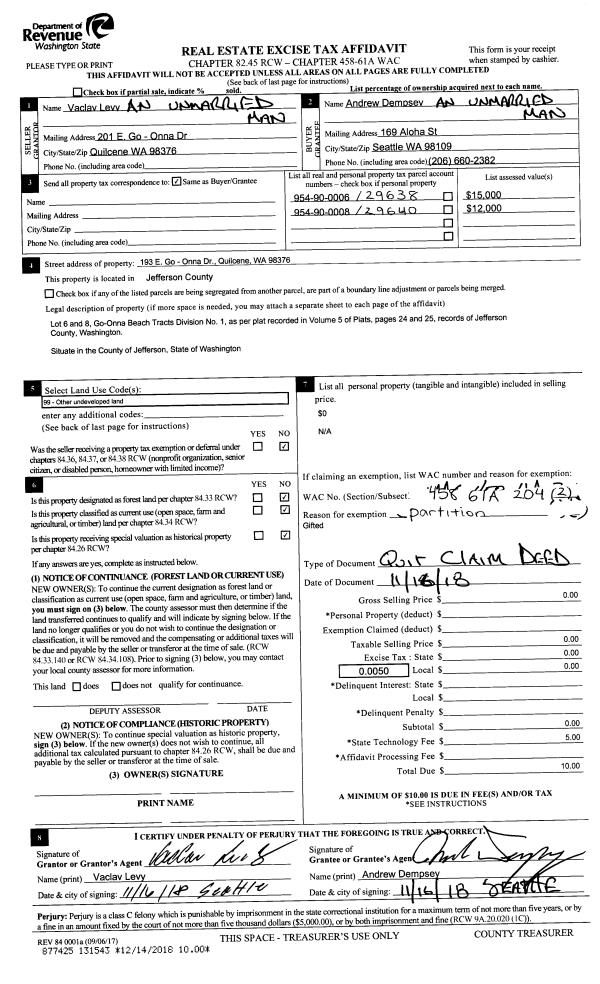 | 2 | 05/17/2018 | SWD | Statutory Warranty Deed | JOHN R JENSEN | ANDREW DEMPSEY | | | $50,000.00 | 130183 | |