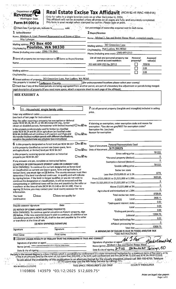 | 1 | 03/07/2025 | PRD | Personal Representatives Deed | WALTER R & ELINE M LYBARGER | MICAHEL J SAX & | | | $761,222.00 | 143979 | |
