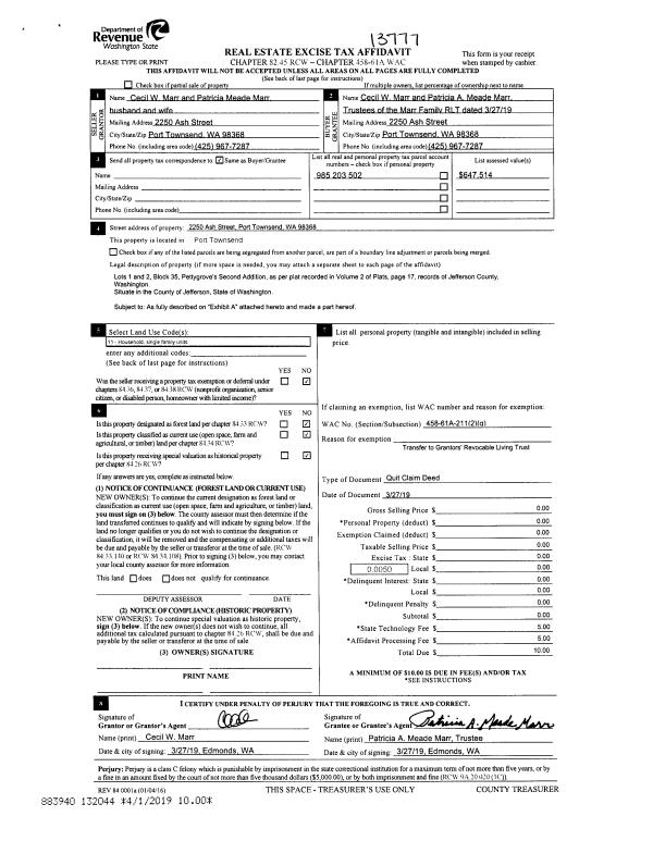 | Mailing Address: | 2412 RAINIER PORT TOWNSEND, WA 98368-5928 | % Ownership: | 100.0000000000% |