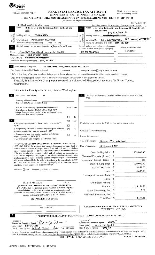 | Mailing Address: | 2317 ROSECRANS ST PORT TOWNSEND, WA 98368-6809 | % Ownership: | 100.0000000000% |