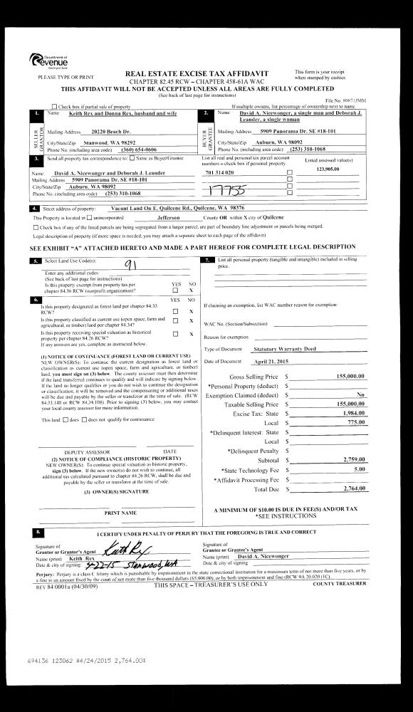 | 1 | 03/15/2016 | SWD | Statutory Warranty Deed | GERALD & PEGGY THUOTTE | GERALD & PEGGY THUOTTE LIVING TRUST | | | | 125479 | |