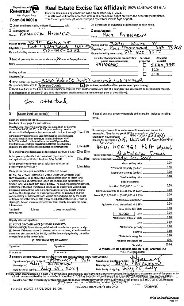 | Mailing Address: | 1152 HASTINGS AVE PORT TOWNSEND, WA 98368 | % Ownership: | 100.0000000000% |