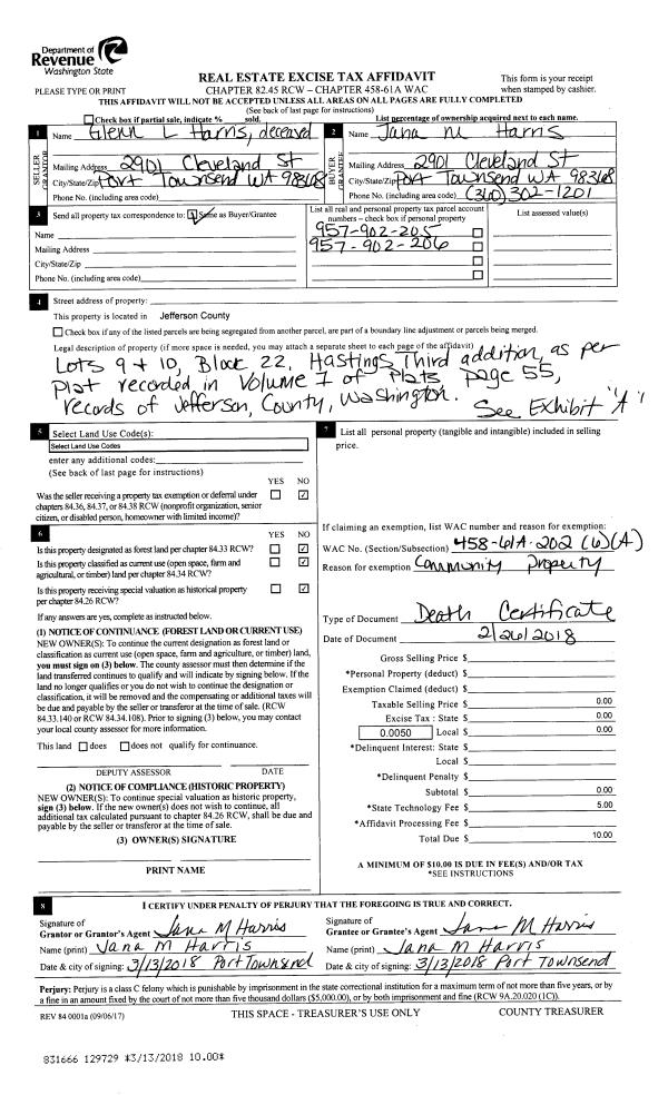 | 2 | 11/01/2016 | SWD | Statutory Warranty Deed | JOHN W WALSH | GLENN L HARRIS | | | $445,000.00 | 126581 | |