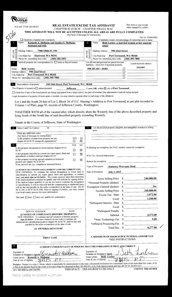 | 5 | 07/02/2015 | SWD | Statutory Warranty Deed | KENNETH A MELHEIM | BETH LORBER | | | $240,000.00 | 123528 | |