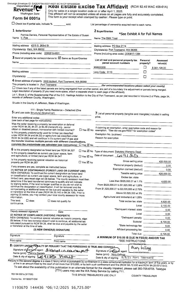| 1 | 06/09/2025 | SWD | Statutory Warranty Deed | SUSAN V POE | DMK TRUST | | | $420,000.00 | 144436 | |
