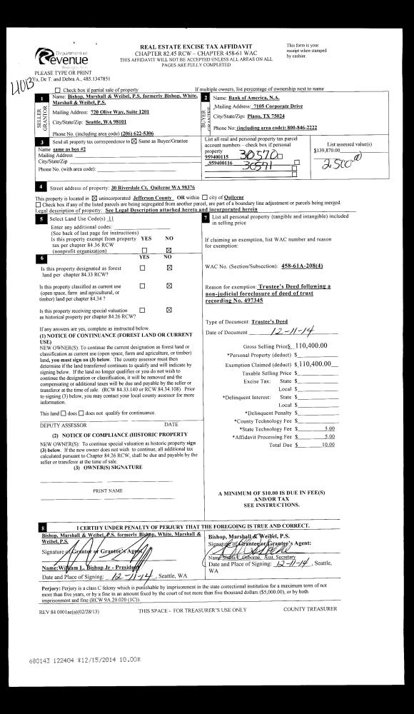 | 2 | 12/11/2014 | TRED | Trustee Deed | DE T YU | BANK OF AMERICA | | | | 122404 | |