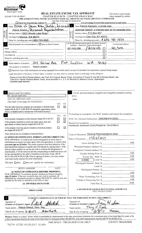 | Mailing Address: | 2071 31ST ST PORT TOWNSEND, WA 98368-4704 | % Ownership: | 100.0000000000% |