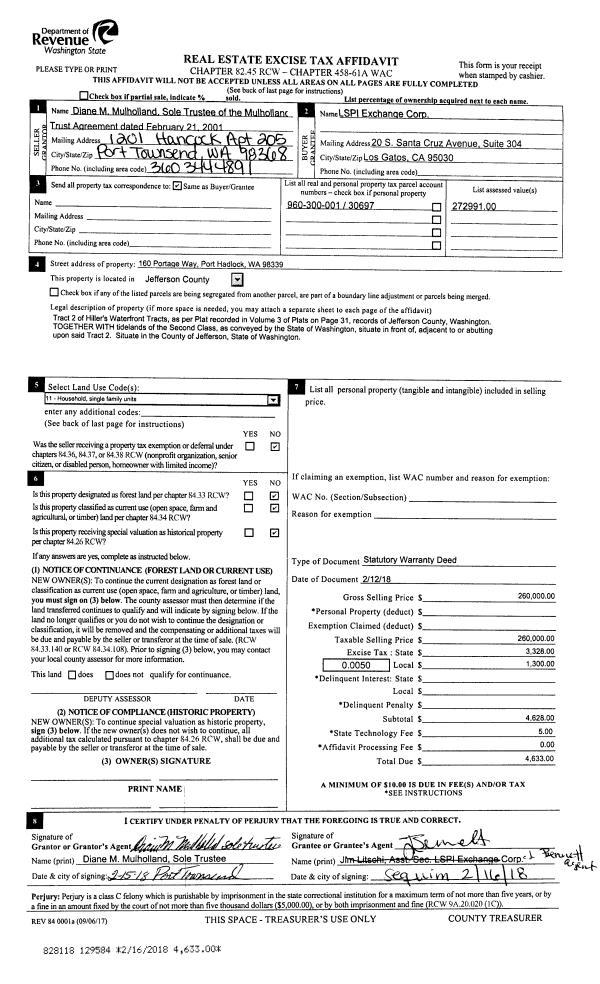 | 2 | 05/21/2018 | SWD | Statutory Warranty Deed | LSPI EXCHANGE CORP | GENTILLALLI FAMILY LIVING TRUST | | | | 130245 | |