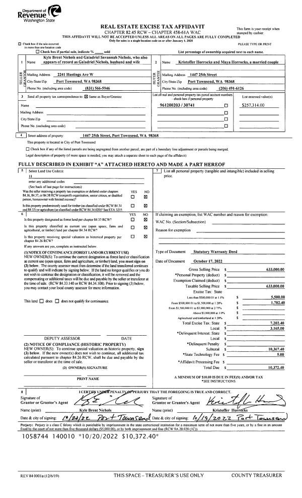 | 1 | 10/17/2022 | SWD | Statutory Warranty Deed | KYLE B & GALADRIEL S NICHOLS | KRISTOFFER & MAYA HORROCKS | | | $633,000.00 | 140010 | |