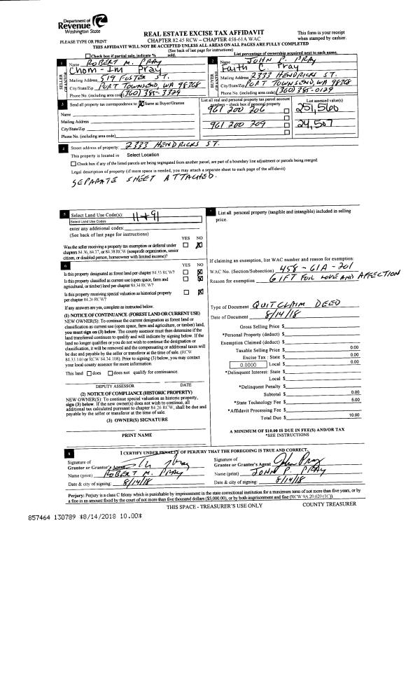 | 2 | 08/14/2018 | QCD | Quit Claim Deed | ROBERT M PRAY | JOHN P & FAITH C PRAY | | | | 130789 | |
